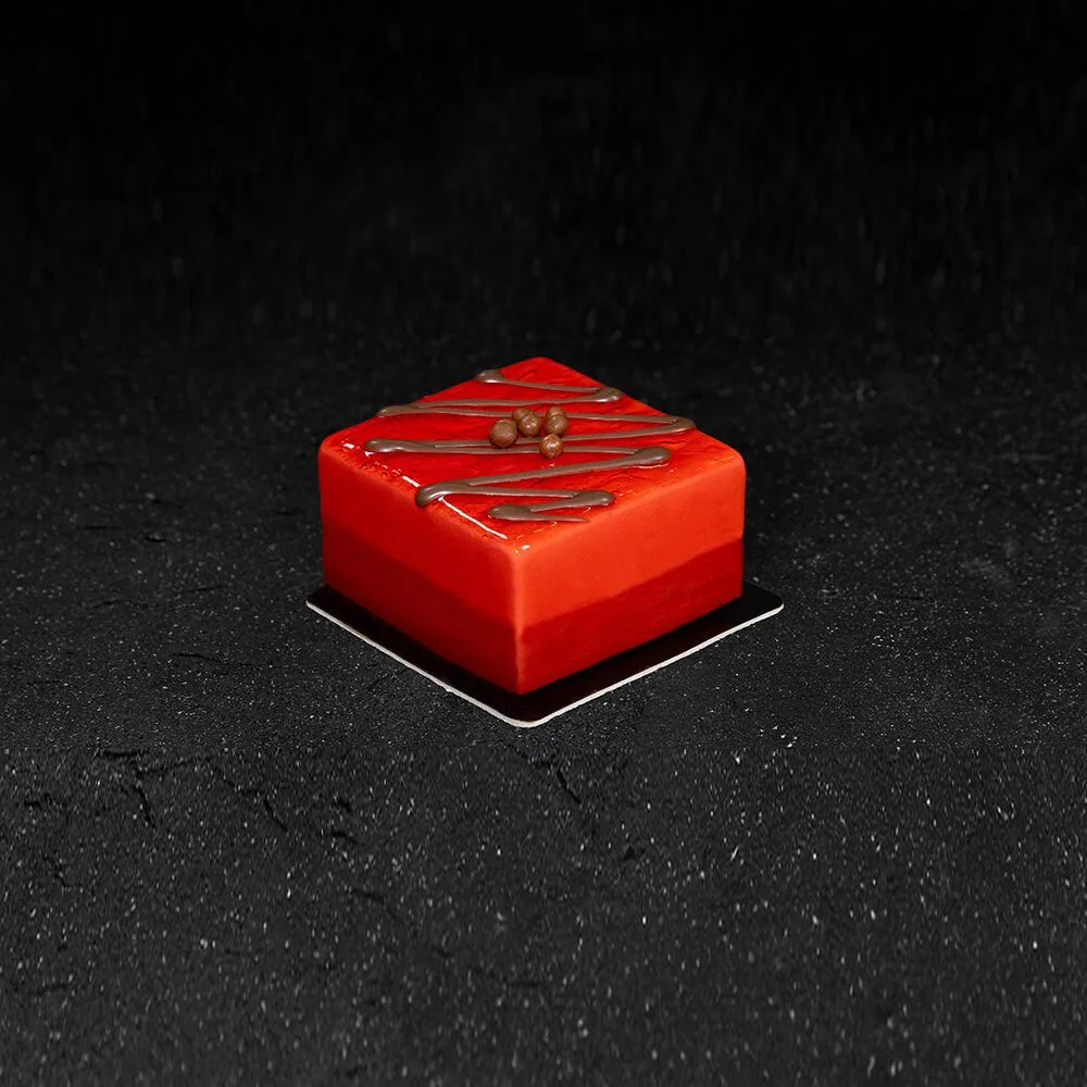 Fluffy chocolate sponge cake with chocolate-strawberry cream filling and strawberry icing coating.