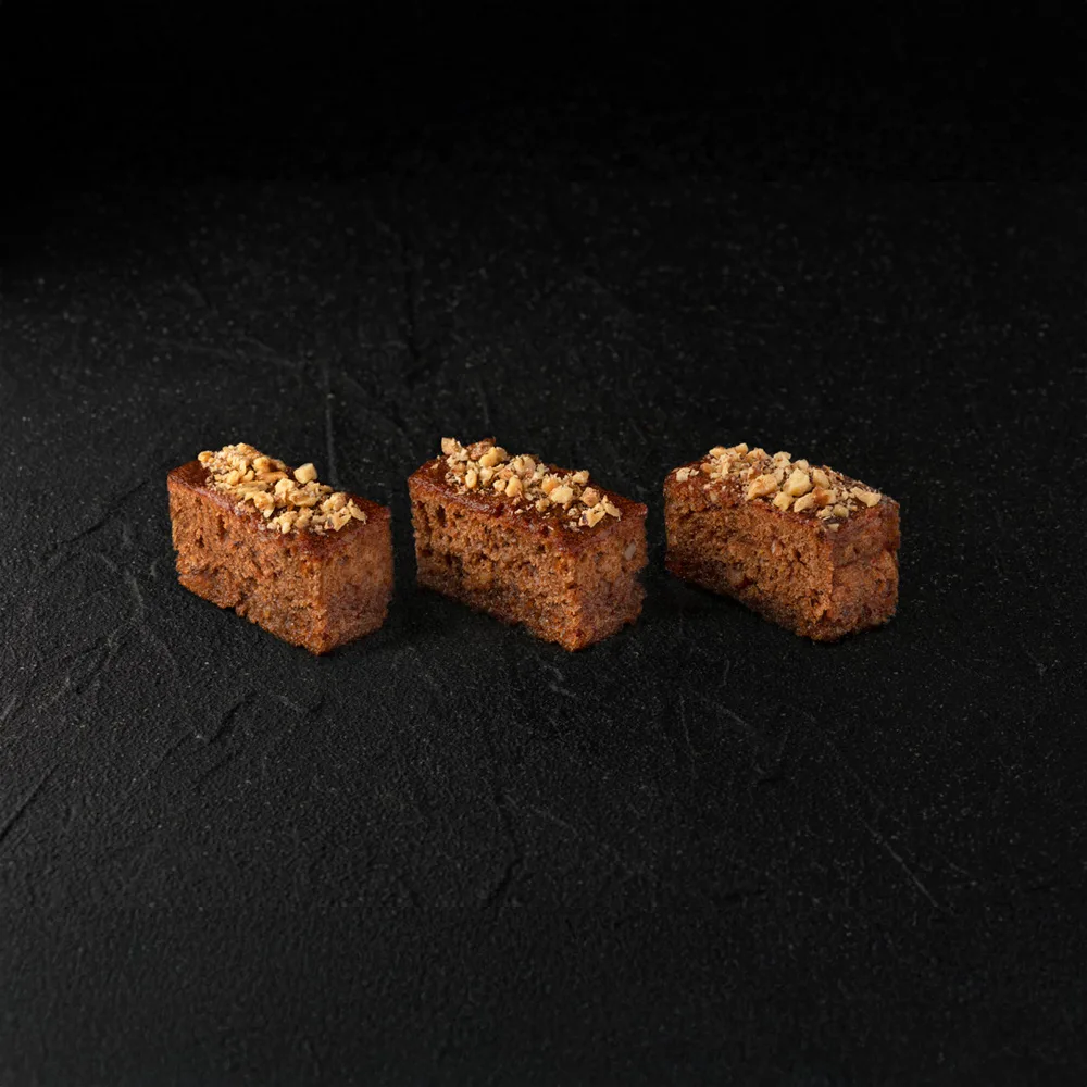 Traditional walnut pie with light syrup and cinnamon flavor.